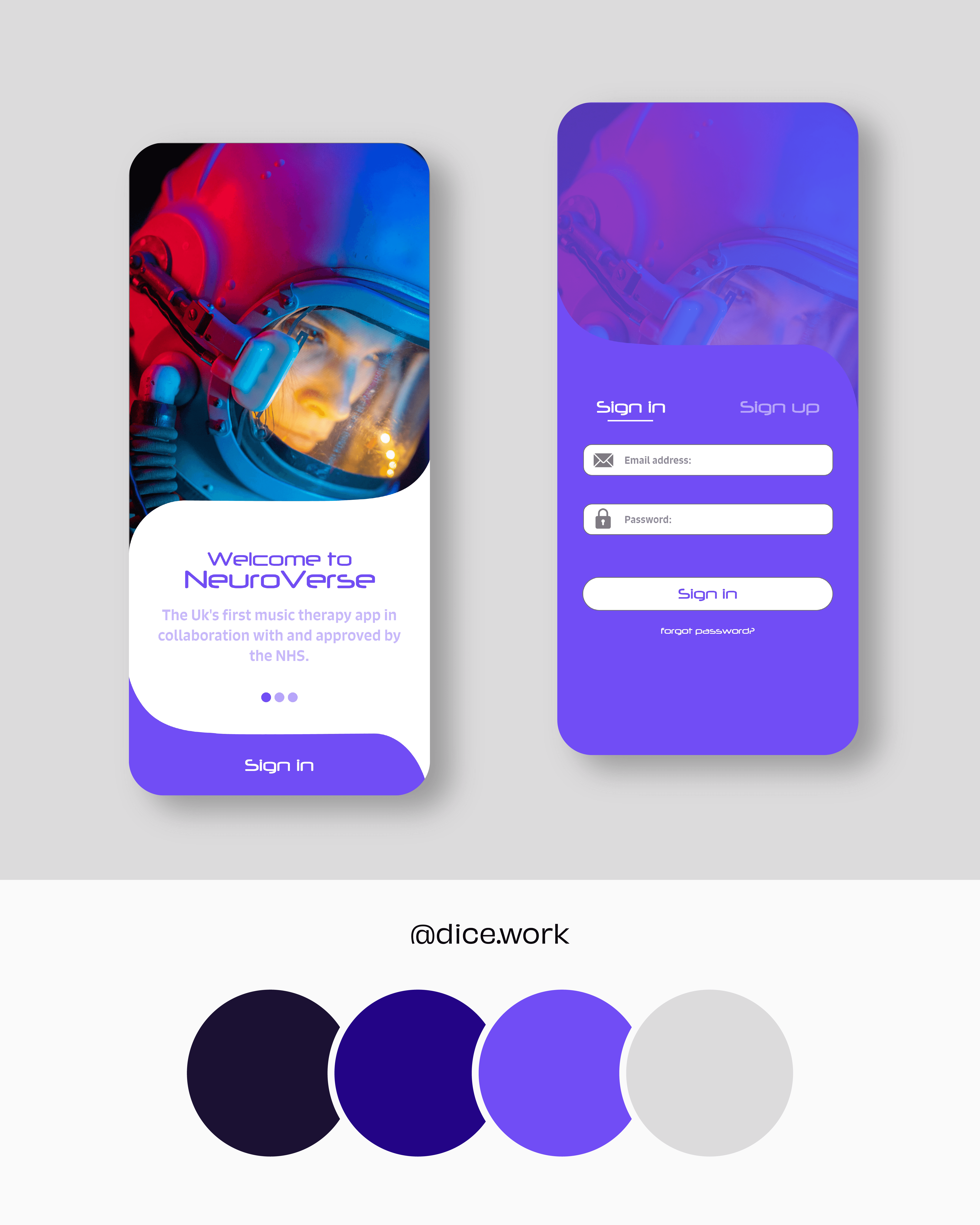 Design Decision (colour palette): The next major design decision was deciding on the colour palette. After conducting colour theory research, I purposefully used blue and purple hues, as blue is known for its calming psychological effects, enhancing the app’s therapeutic atmosphere.
