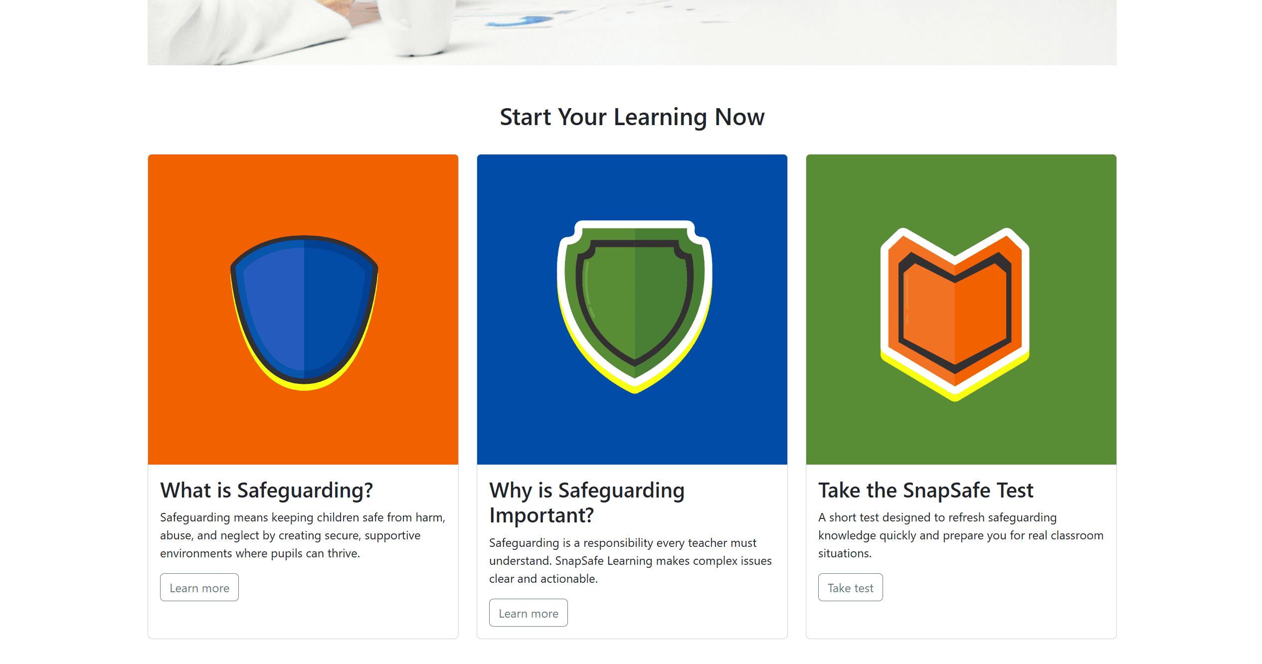 The colour palette for SnapSafe Learning uses bright yellow to represent high-visibility and safety, while blue conveys trust, security, and calmness. Orange was added to provide warmth and contrast, helping the design feel balanced and engaging. Together, these primary colours create the perfect harmony for a project focused on safeguarding children in early education.
